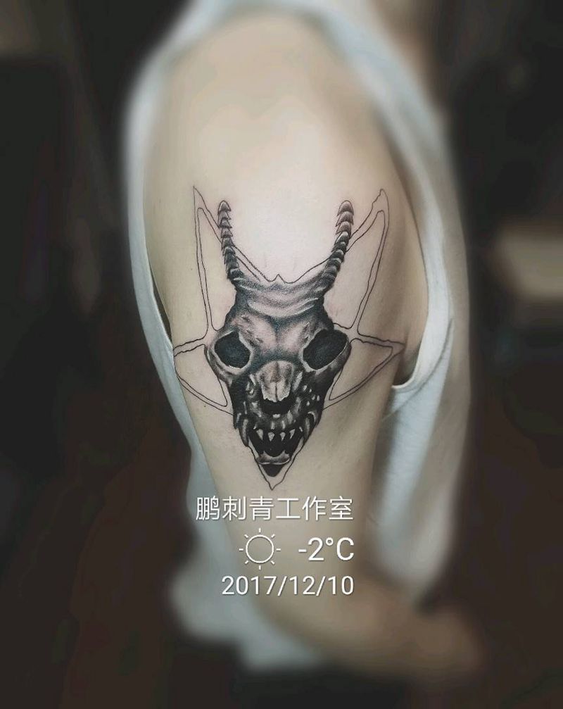 当前位置: 首页 >陕西省西安市纹身店-TATTOO HONE纹身工作室纹身图案>羊兽纹身图片_原创纹身图案