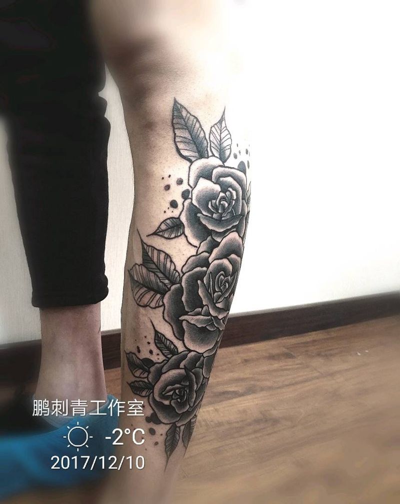• T网红王老大花腿龙纹身图片_腿部新传统纹身图案