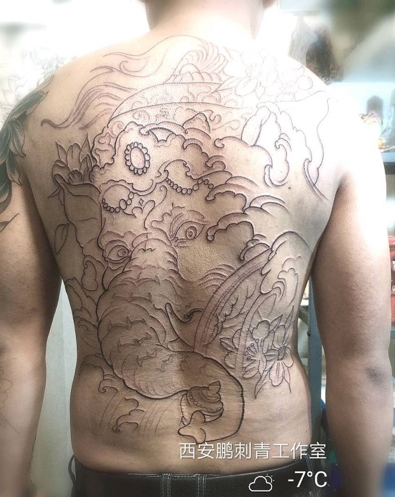 • 黑灰满背纹身图案
