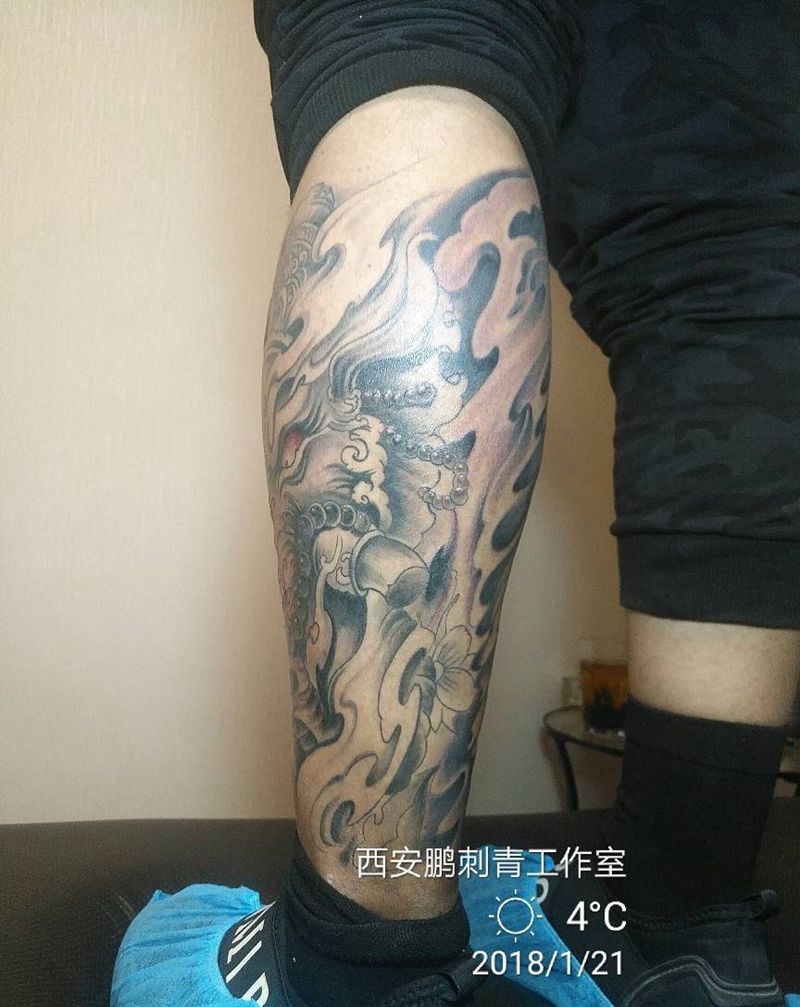 • T网红王老大花腿龙纹身图片_腿部新传统纹身图案