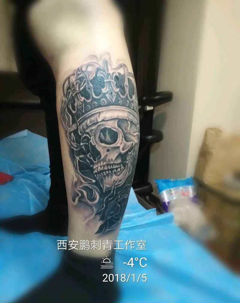 • T网红王老大花腿龙纹身图片_腿部新传统纹身图案