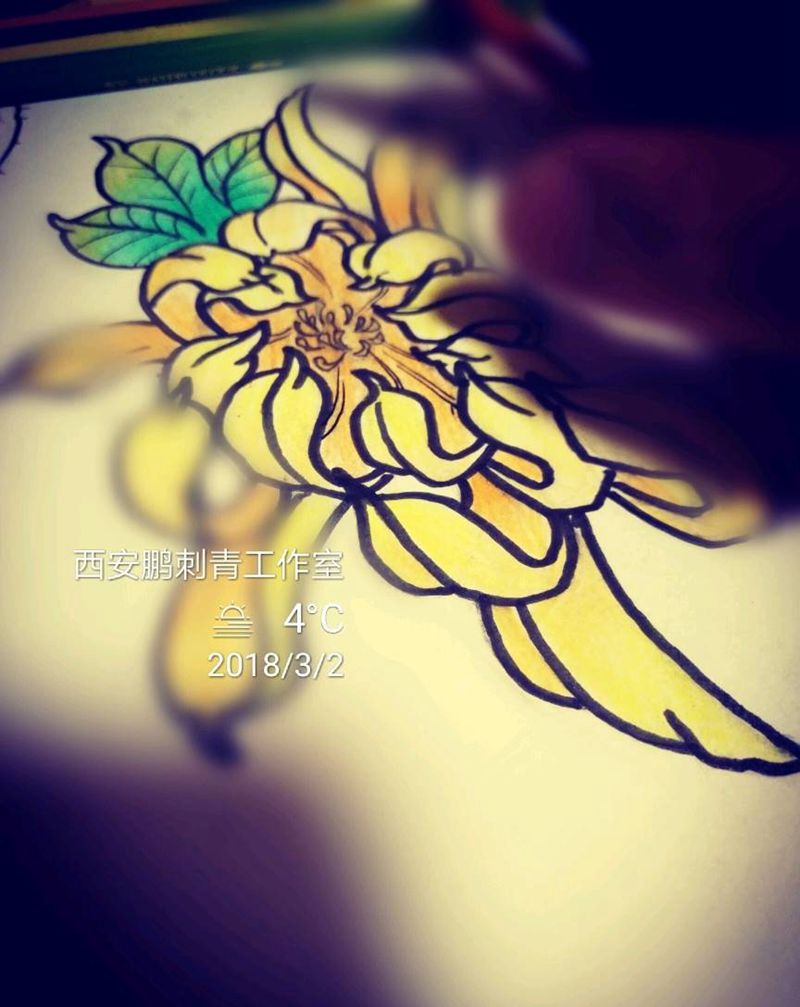 当前位置: 首页 >陕西省西安市纹身店-TATTOO HONE纹身工作室纹身图案>菊纹身图片_手稿纹身图案