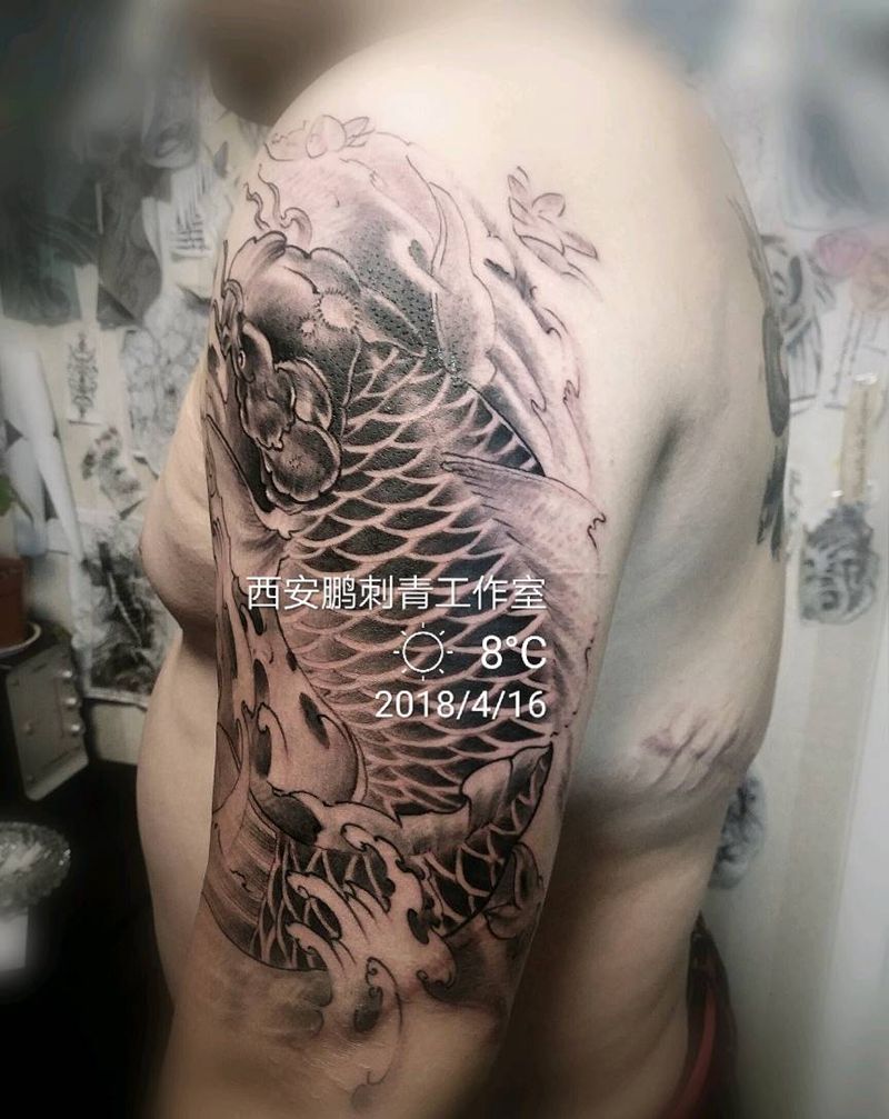 当前位置: 首页 >陕西省西安市纹身店-TATTOO HONE纹身工作室纹身图案>鲤鱼纹身图片_新传统纹身图案