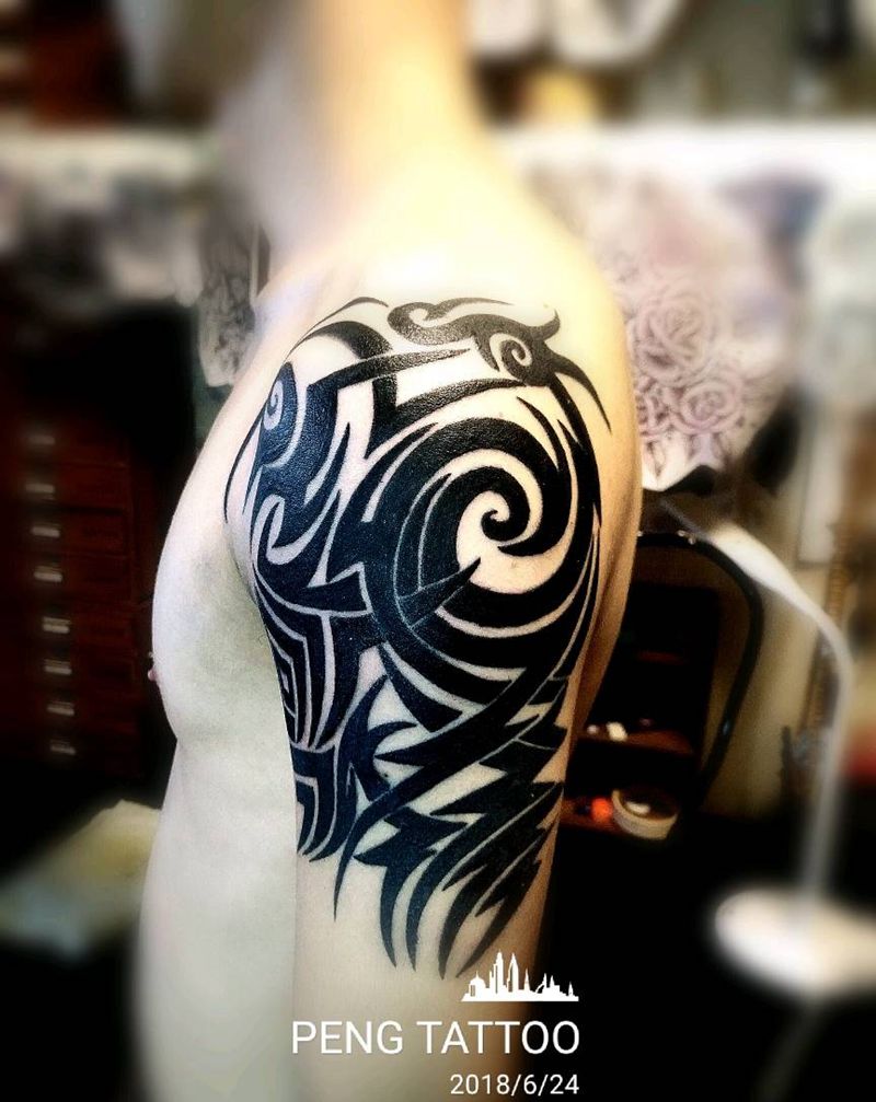 • 纹身吧推荐的披肩图腾半胛纹身图案作品展示