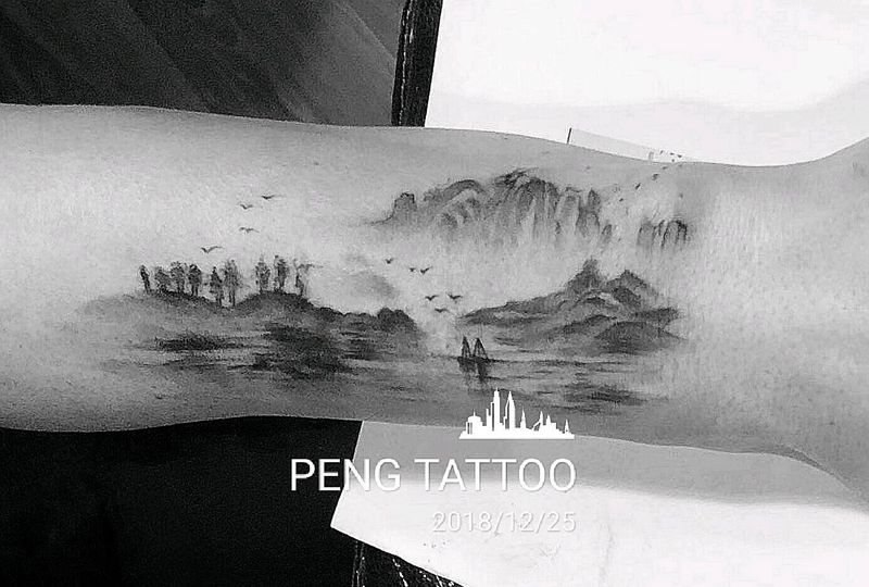 当前位置: 首页 >陕西省西安市纹身店-TATTOO HONE纹身工作室纹身图案>水墨山水遮盖作品分享纹身图片
