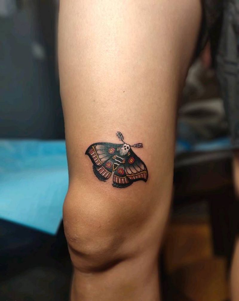 当前位置: 首页 >陕西省西安市纹身店-TATTOO HONE纹身工作室纹身图案>大蛾子纹身图片_腿部New School纹身图案