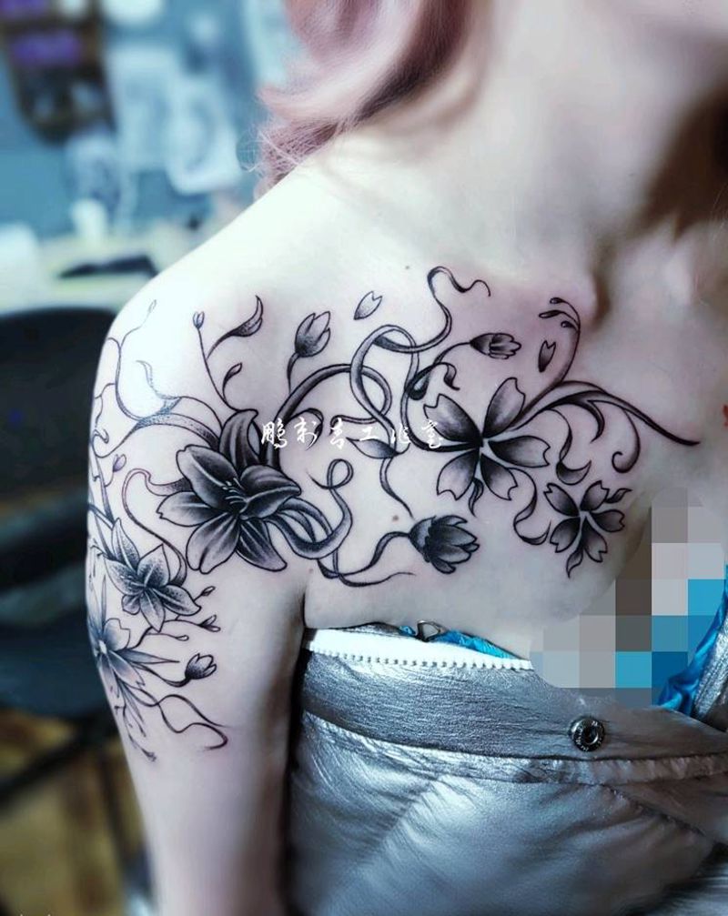 • 女性大花胸纹身_43张霸气漂亮的女性大花胸纹身图案作品