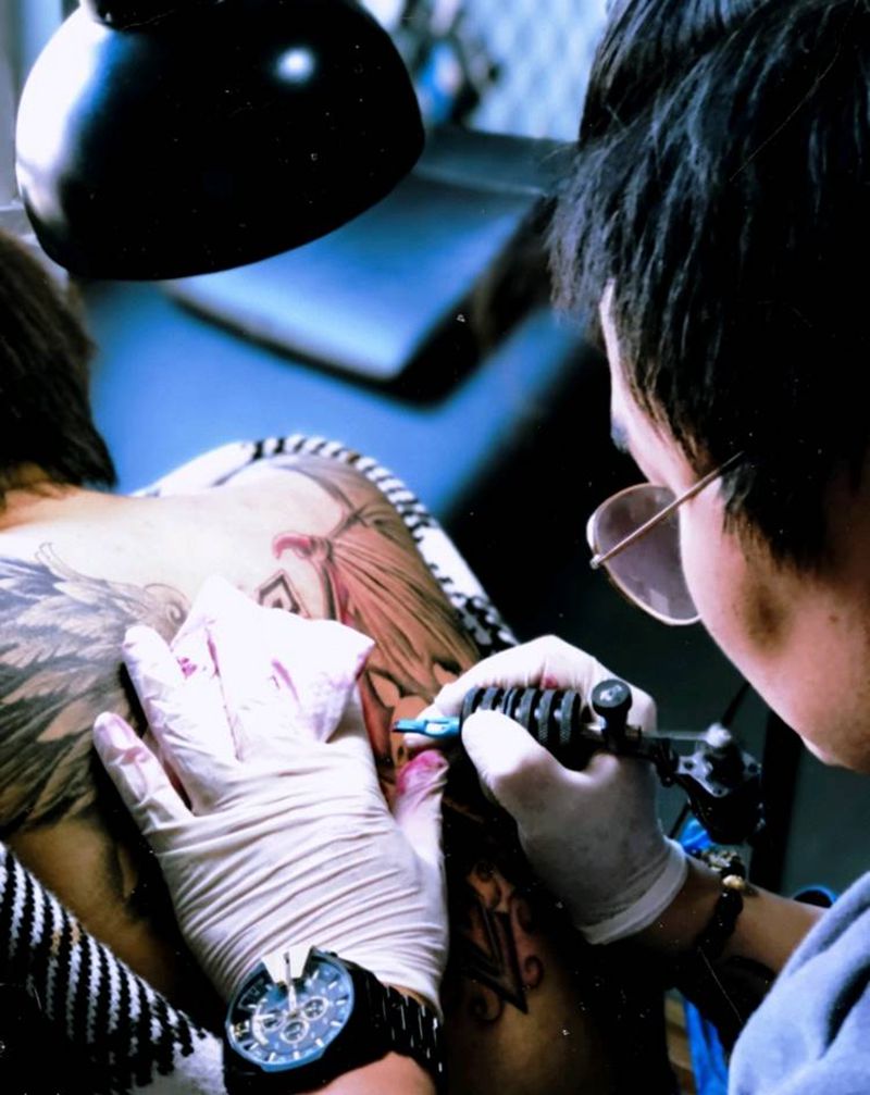 当前位置: 首页 >陕西省西安市纹身店-TATTOO HONE纹身工作室纹身图案>天使与恶魔纹身图片_背部新传统纹身图案