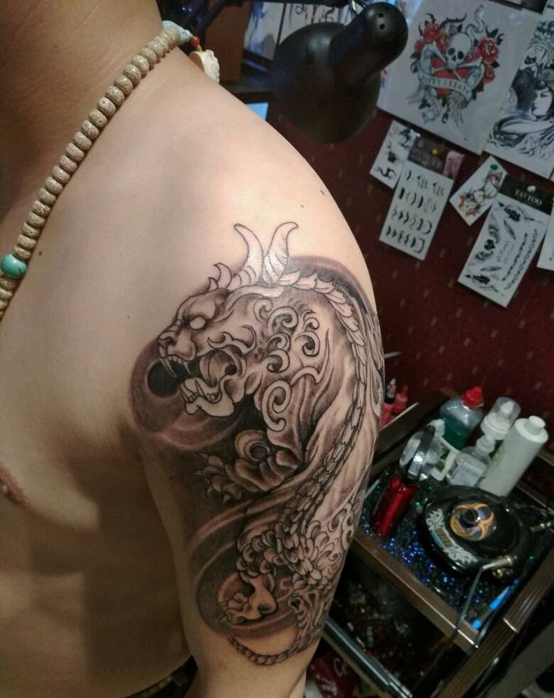 • 纹身吧推荐的披肩图腾半胛纹身图案作品展示