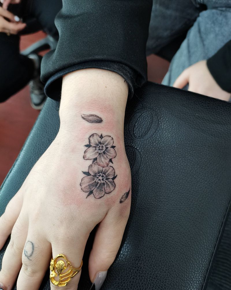 • 手背潮流时尚的玫瑰花眼睛纹身图案