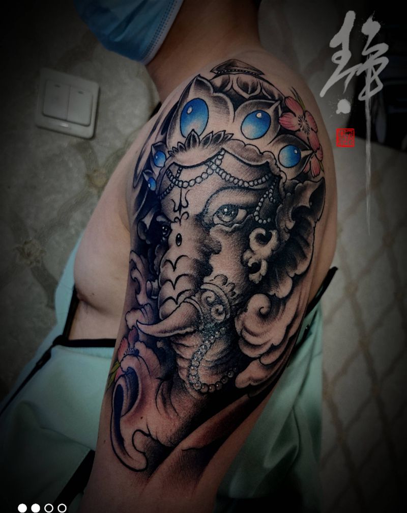 当前位置: 首页 >陕西省西安市纹身店-刺青工作室纹身图案>象神纹身图片_手臂纹身图案