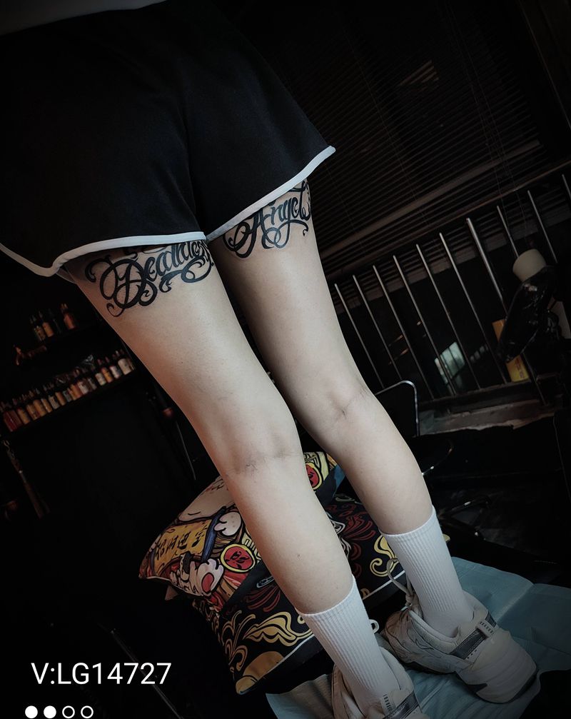 当前位置: 首页 >陕西省西安市纹身店-刺青工作室纹身图案>花体字纹身图片_腿部纹身图案