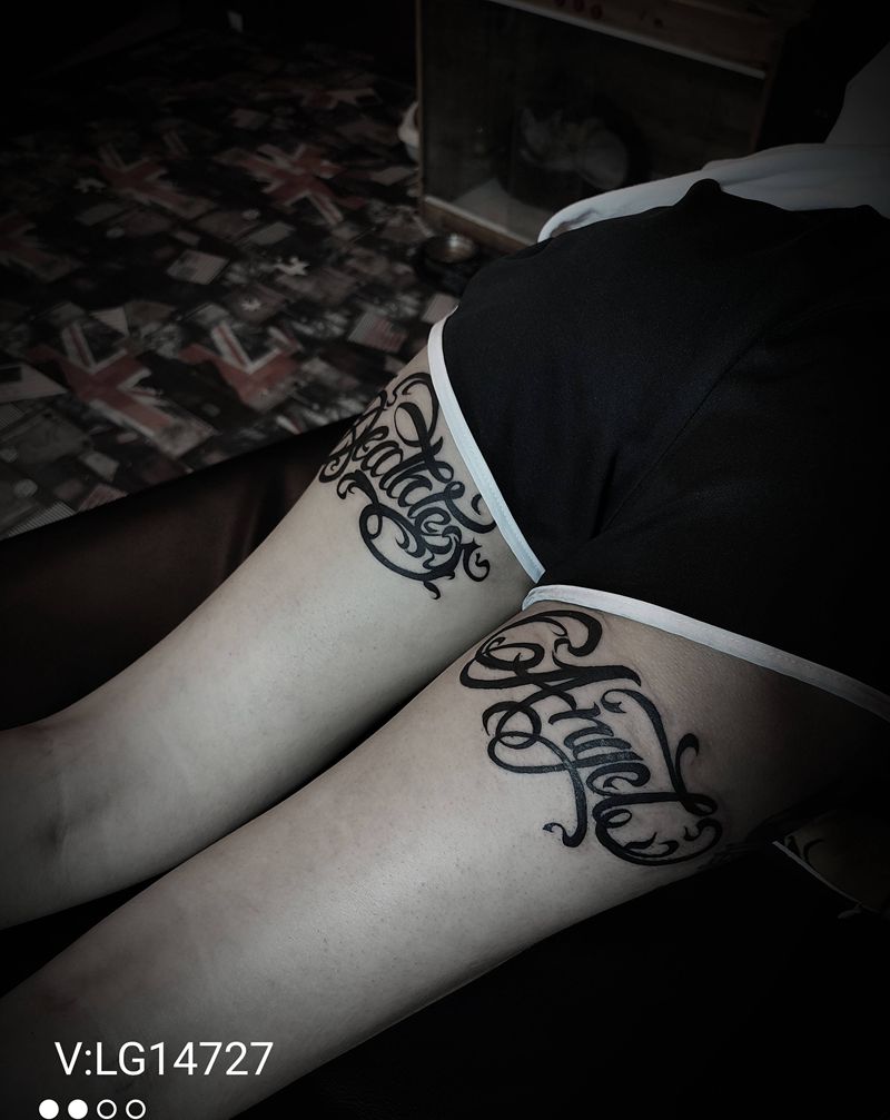 当前位置: 首页 >陕西省西安市纹身店-刺青工作室纹身图案>花体字纹身图片_腿部纹身图案