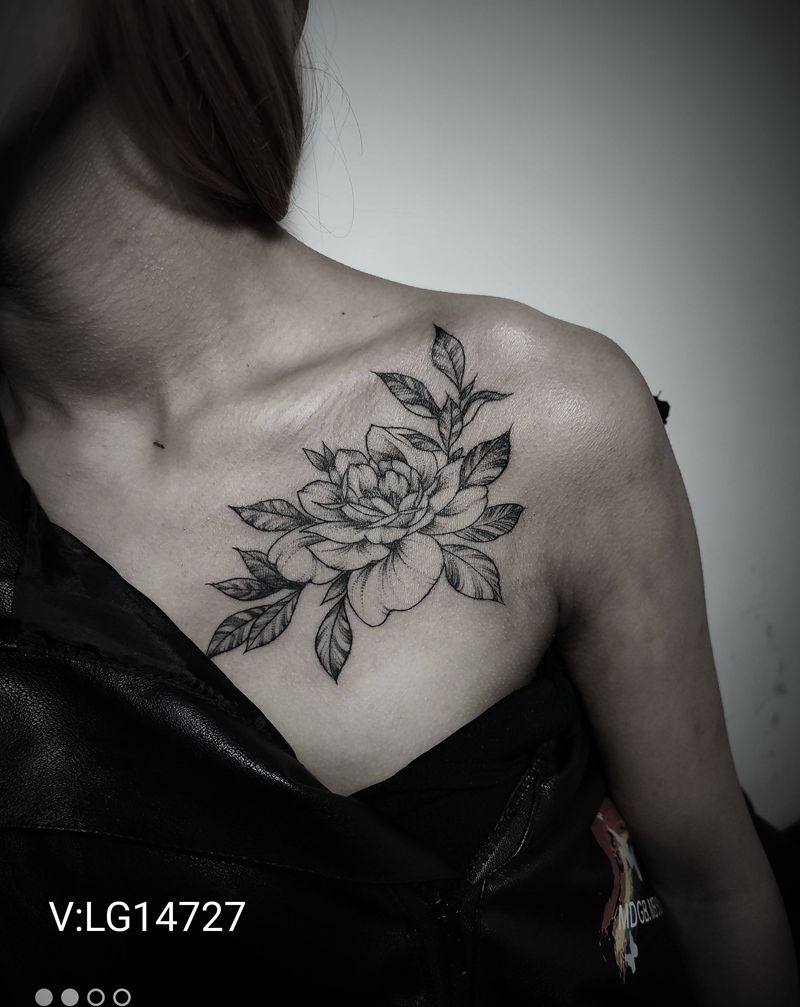 • 女性大花胸纹身_43张霸气漂亮的女性大花胸纹身图案作品