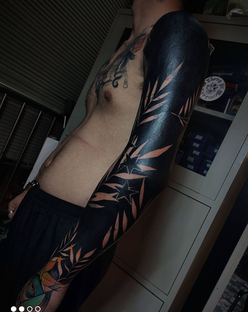 当前位置: 首页 >陕西省西安市纹身店-刺青工作室纹身图案>黑臂纹身图片_手臂纹身图案