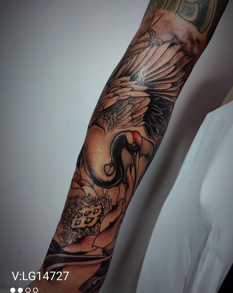 当前位置: 首页 >陕西省西安市纹身店-刺青工作室纹身图案>鹤纹身图片_手臂纹身图案