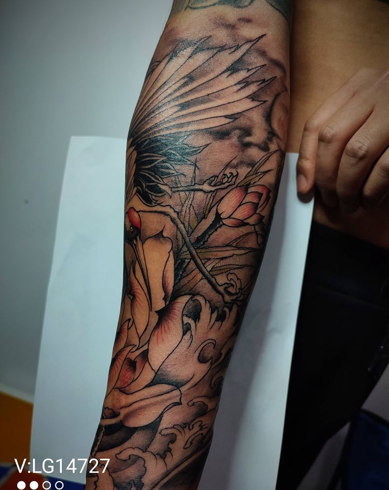 当前位置: 首页 >陕西省西安市纹身店-刺青工作室纹身图案>鹤纹身图片_手臂纹身图案