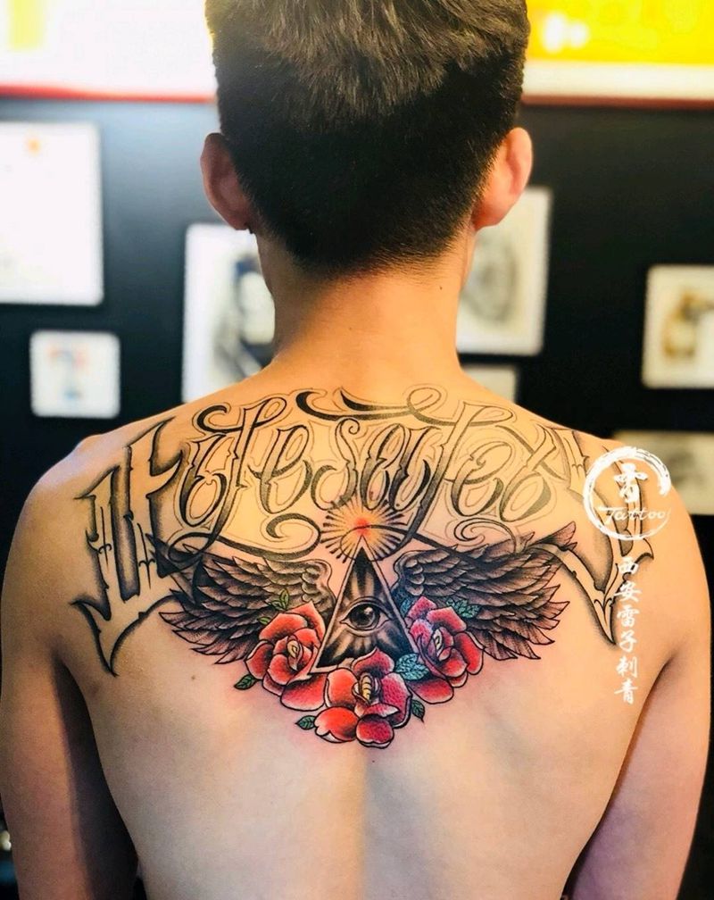 当前位置: 首页 >陕西省西安市纹身店-刺青工作室纹身图案>翅膀眼睛玫瑰纹身图片_背部纹身图案