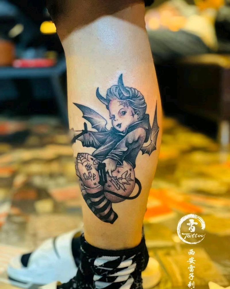 当前位置: 首页 >陕西省西安市纹身店-刺青工作室纹身图案>恶魔天使纹身图片_腿部天使纹身图案