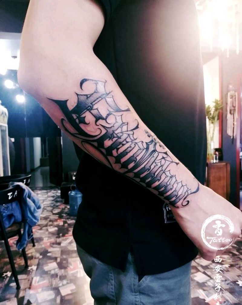 当前位置: 首页 >陕西省西安市纹身店-刺青工作室纹身图案>花体字纹身图片_手臂纹身图案