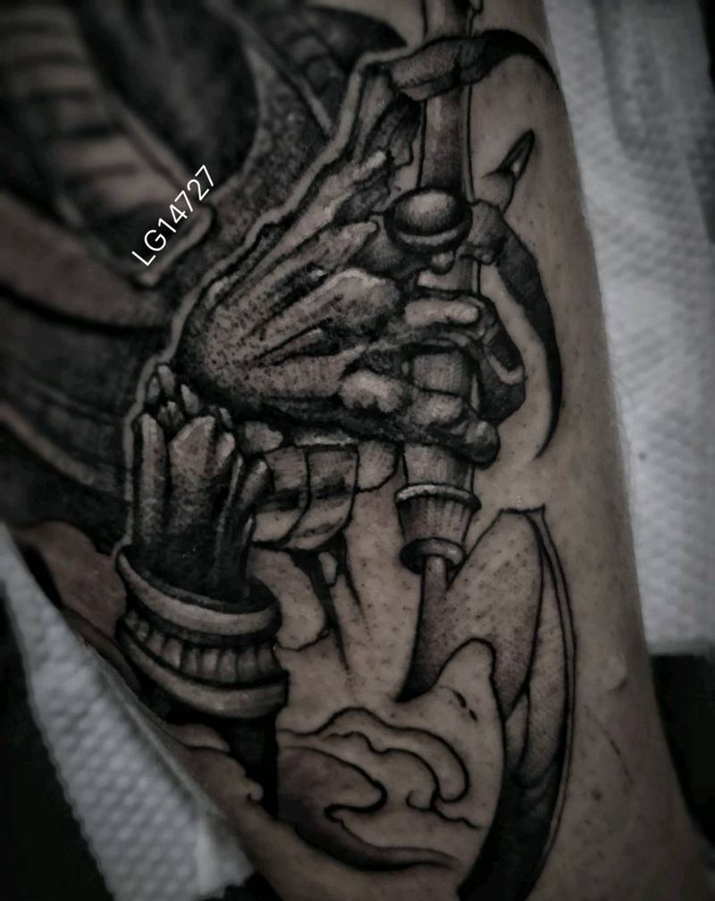 当前位置: 首页 >陕西省西安市纹身店-刺青工作室纹身图案>阿努比斯纹身图片_腿部纹身图案