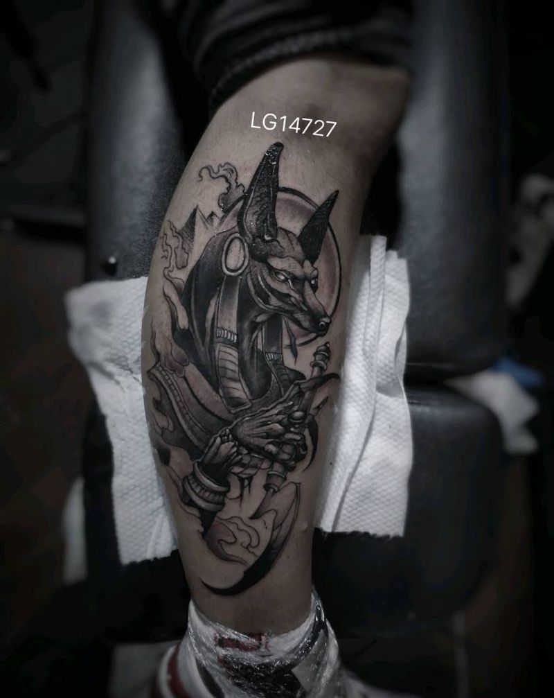 当前位置: 首页 >陕西省西安市纹身店-刺青工作室纹身图案>阿努比斯纹身图片_腿部纹身图案