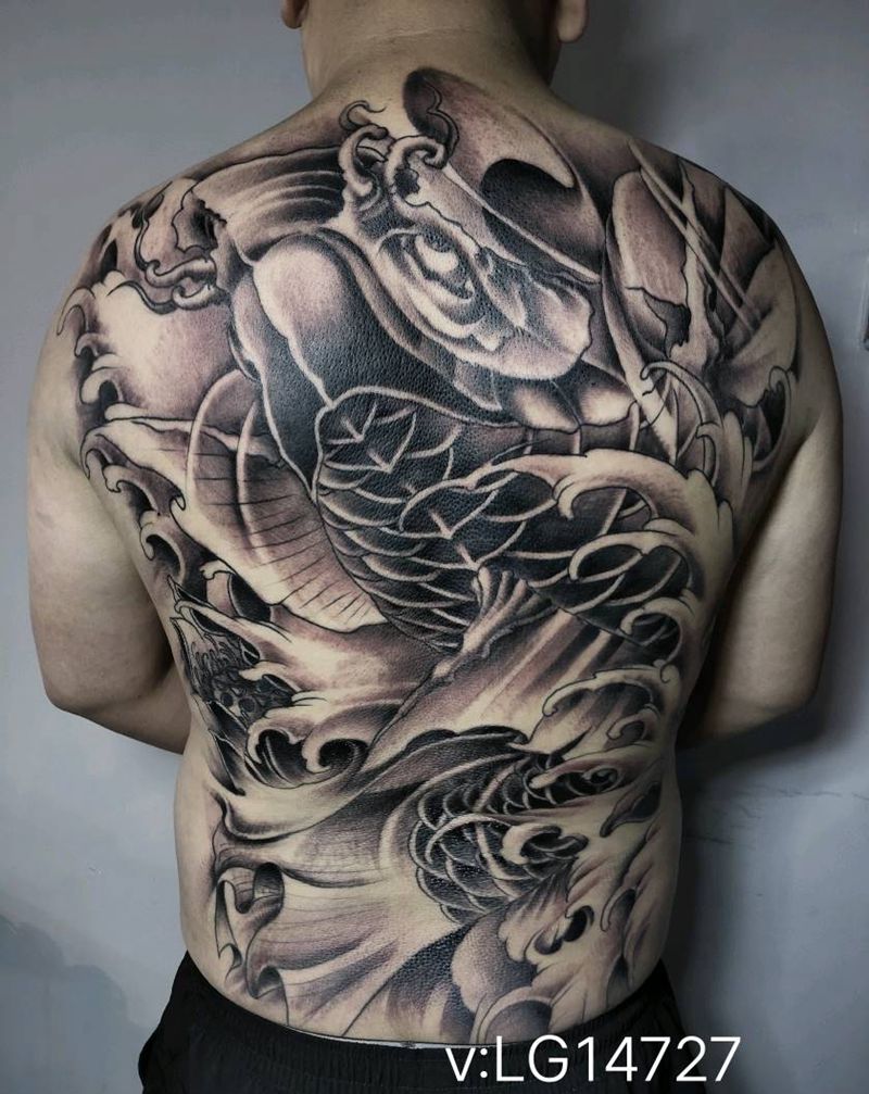 • T云龙九郎纹身图片_背部老传统云龙九郎纹身图案