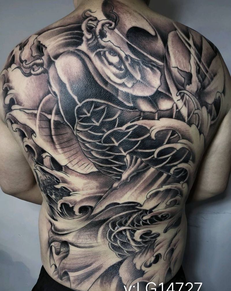 黑灰满背纹身图案