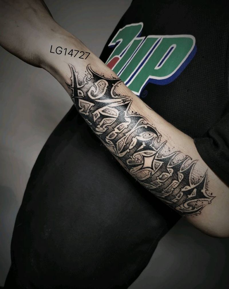 当前位置: 首页 >陕西省西安市纹身店-刺青工作室纹身图案>花体字纹身图片_手臂纹身图案