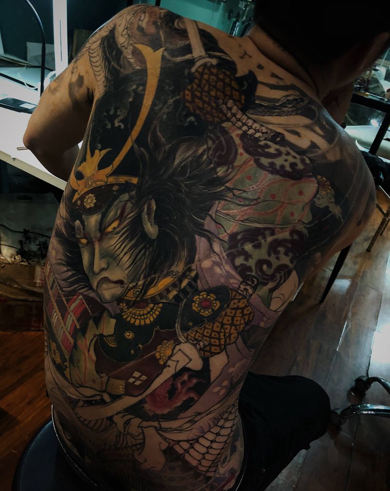 • 黑灰满背纹身图案