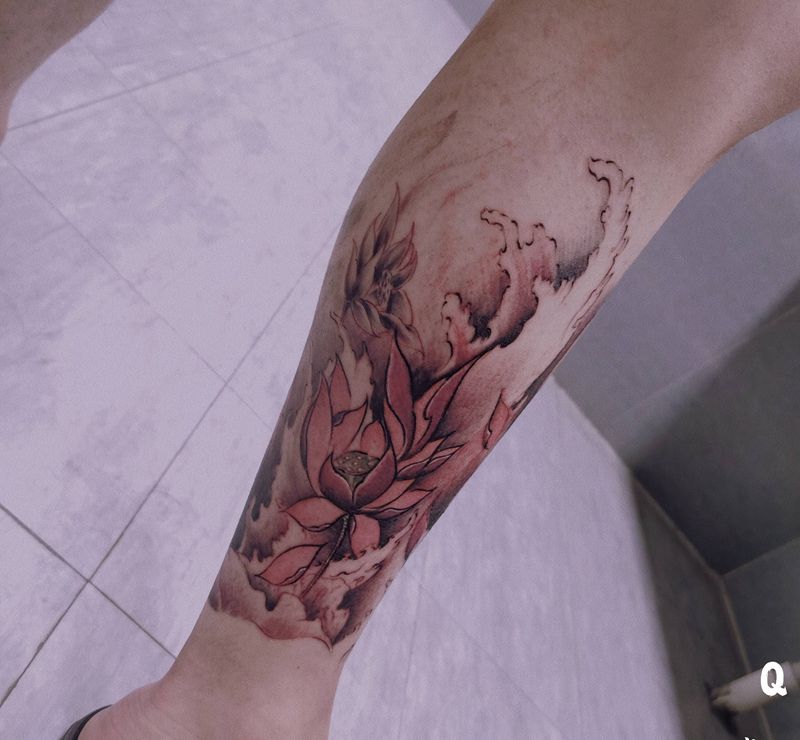 一组15张莲花纹身手