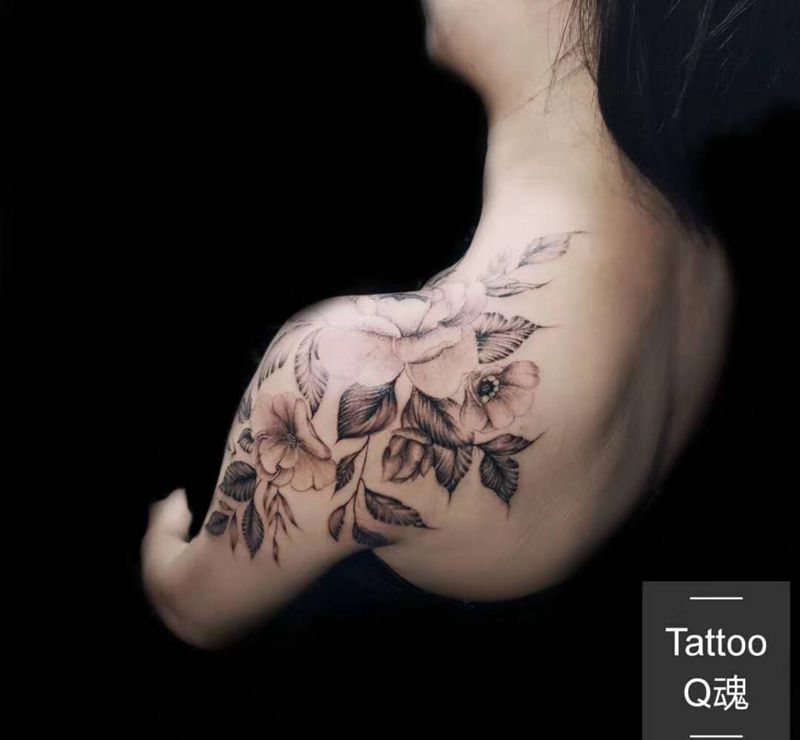 素花纹身图片_肩部纹身图案