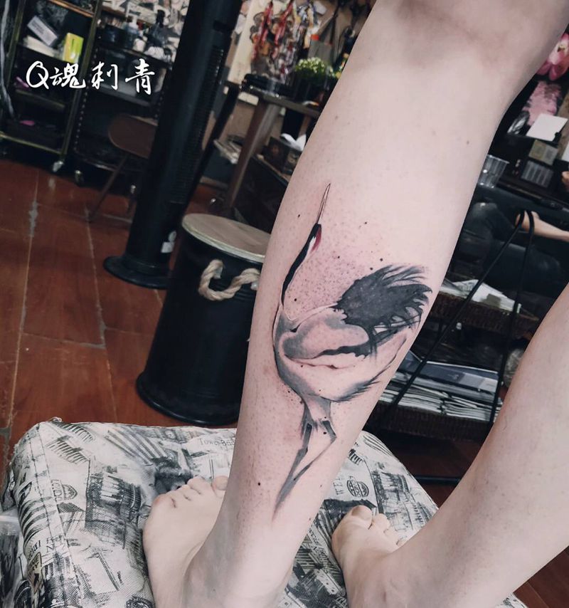 当前位置: 首页 >陕西省西安市纹身店-西安Q魂刺青纹身图案>鹤纹身图片_水墨纹身图案