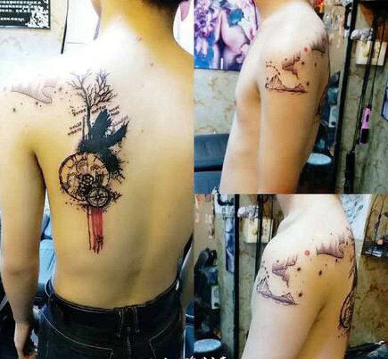 • 纹身吧推荐的披肩图腾半胛纹身图案作品展示