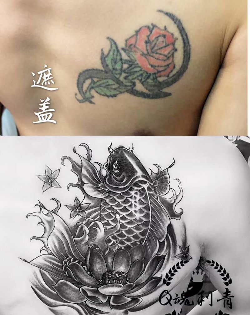 • 女性大花胸纹身_43张霸气漂亮的女性大花胸纹身图案作品