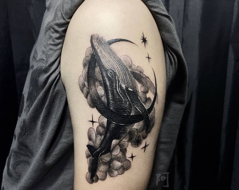 黑灰满背纹身图案