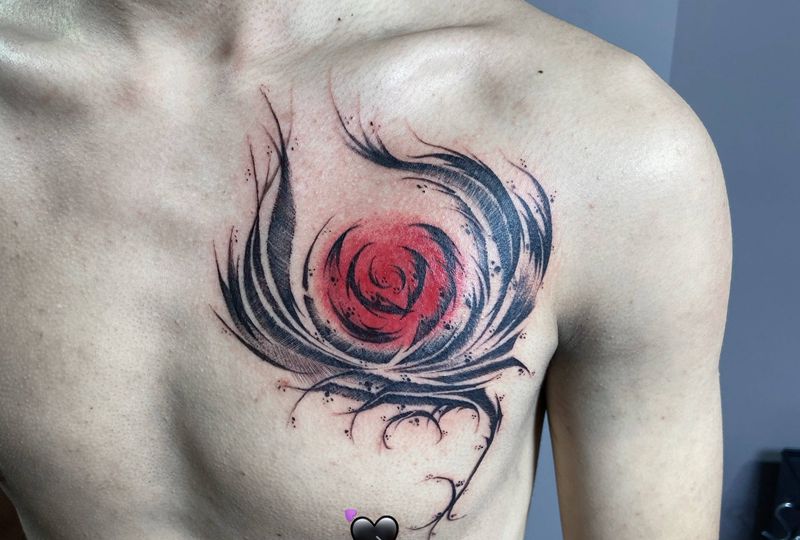 • 女性大花胸纹身_43张霸气漂亮的女性大花胸纹身图案作品