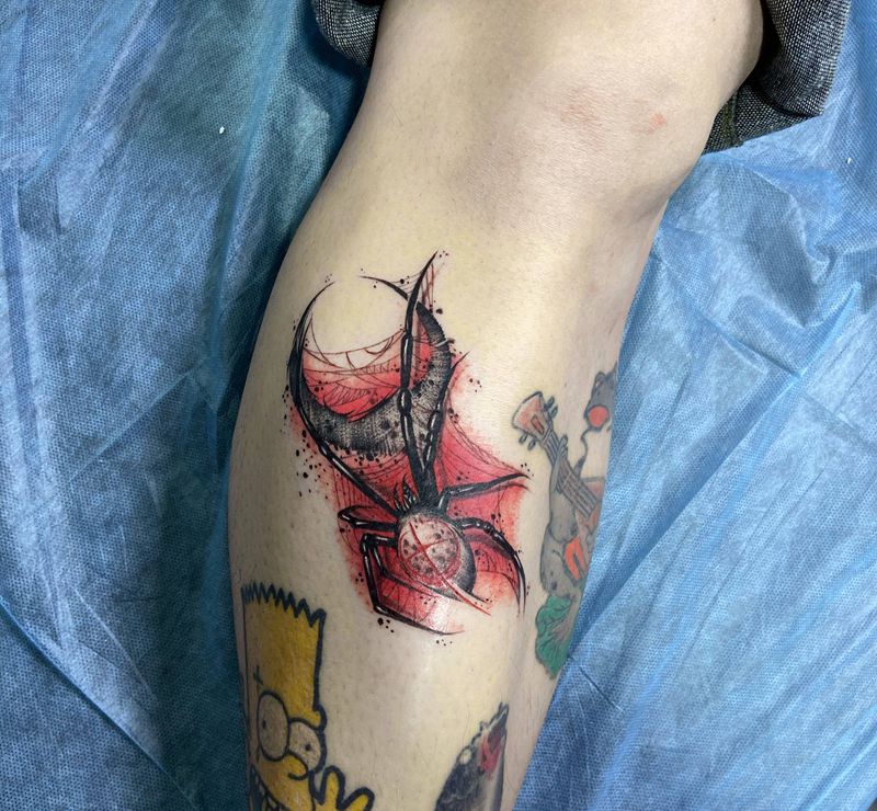 当前位置: 首页 >陕西省西安市纹身店-西安Q魂刺青纹身图案>大几居纹身图片_腿部脚部点刺花体字蜘蛛暗黑纹身图案
