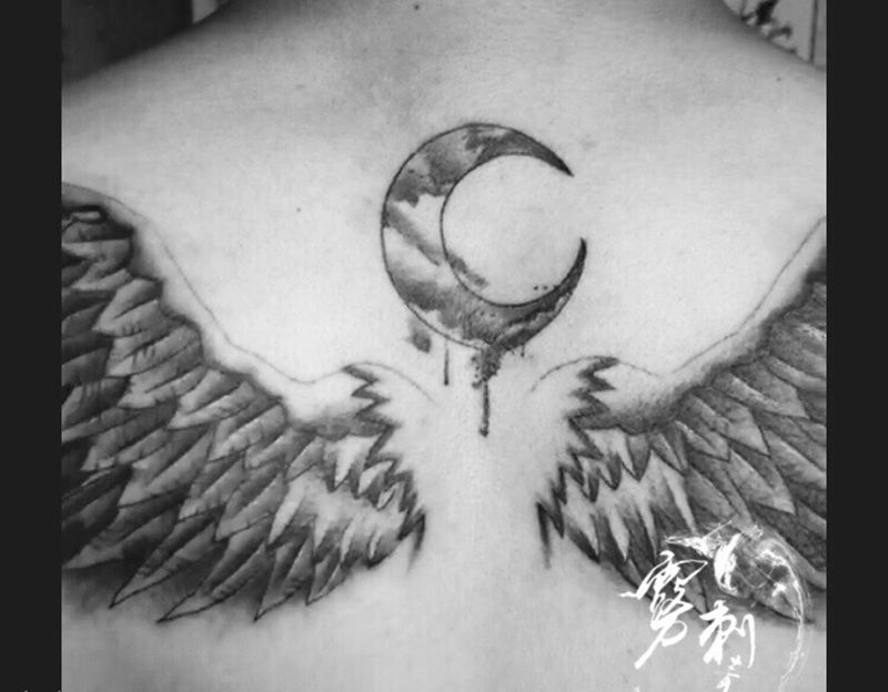 黑灰满背纹身图案