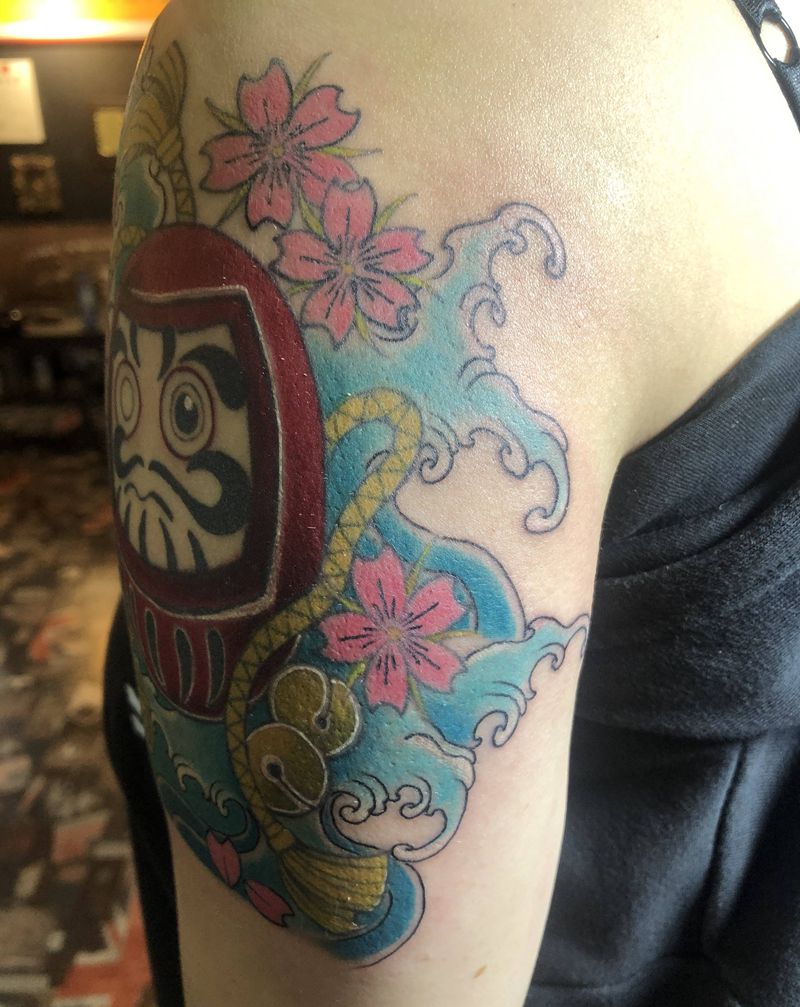 当前位置: 首页 >陕西省西安市纹身店-青雲刺青纹身图案>达摩蛋 修改添加纹身图片_手臂手部新传统New School纹身图案