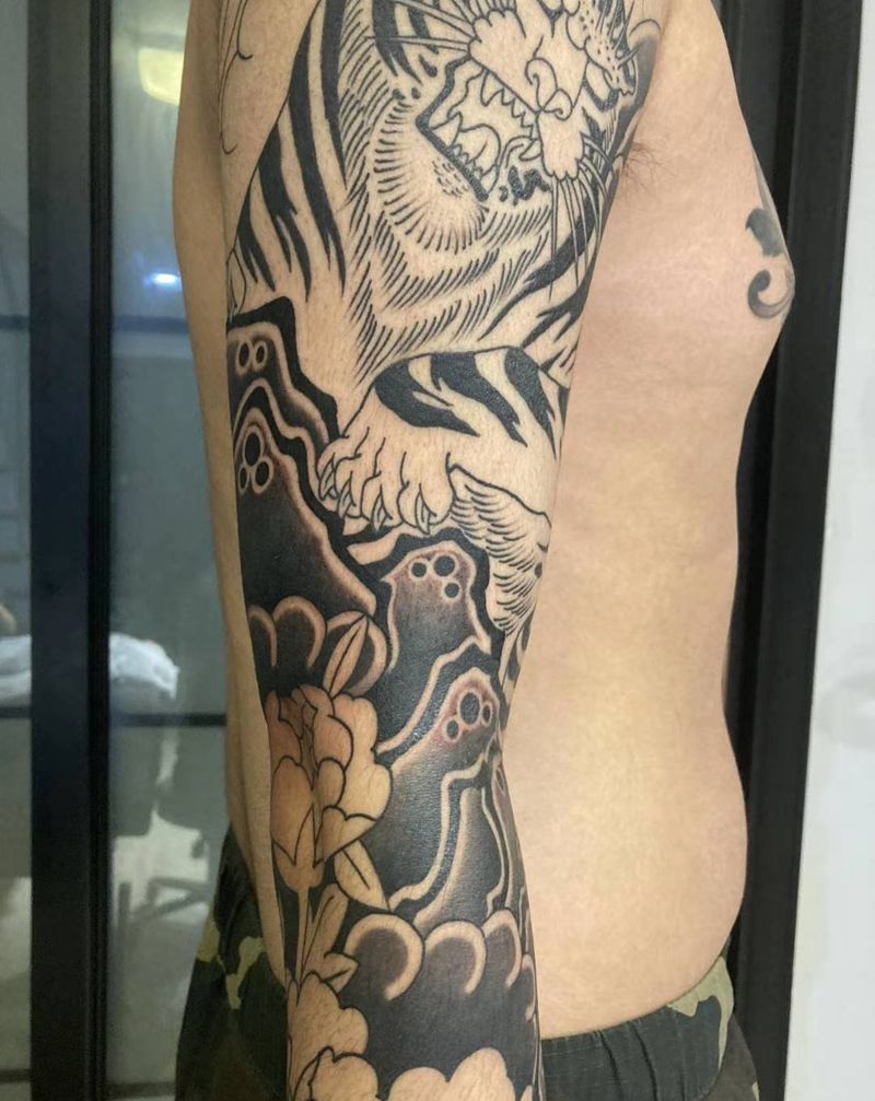 当前位置: 首页 >陕西省西安市纹身店-木子刺青纹身图案>花臂虎纹身图片_手臂老传统纹身图案