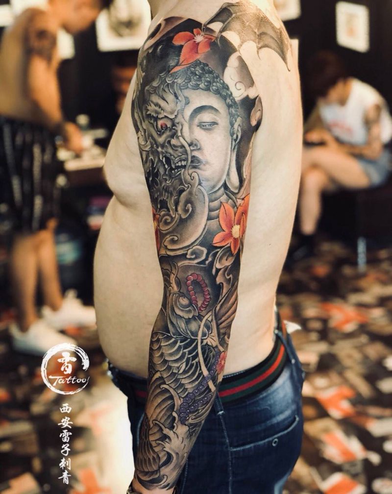 一念之间纹身图片_手臂传统鬼神动物纹身图案