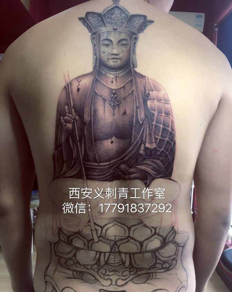 当前位置: 首页 >陕西省西安市纹身店-留白刺青纹身图案>满背石裂地藏王未完成纹身图片_原创宗教写实背部人物手稿纹身图案