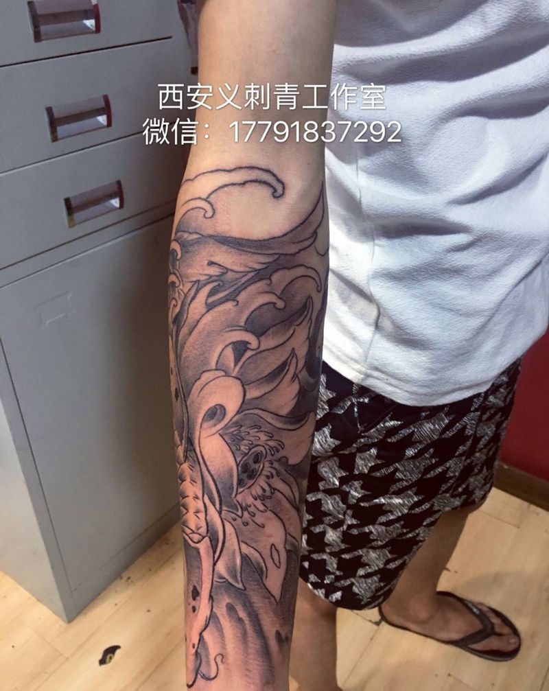 当前位置: 首页 >陕西省西安市纹身店-留白刺青纹身图案>锦鲤纹身图片_成品手臂传统纹身图案