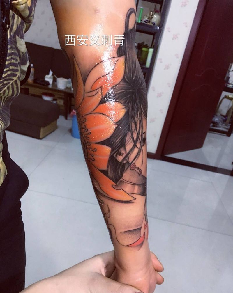 一组15张莲花纹身手