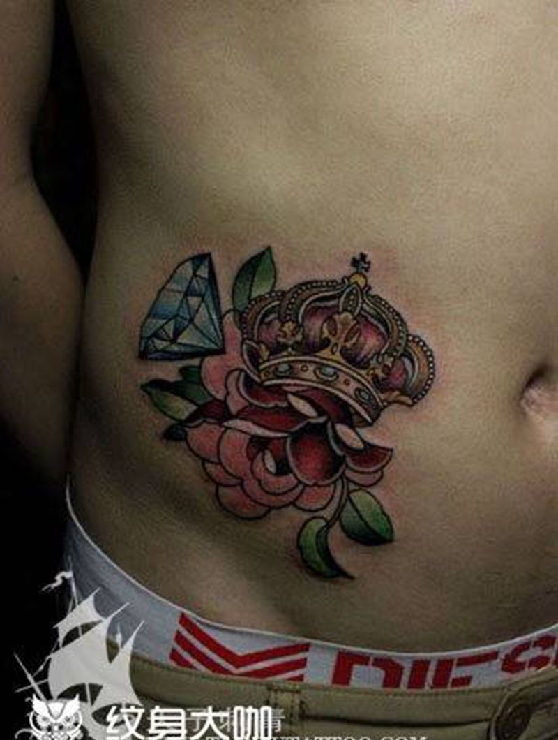 • T关于私处得爱!纹身图片_成品腹部清新字符图腾纹身图案
