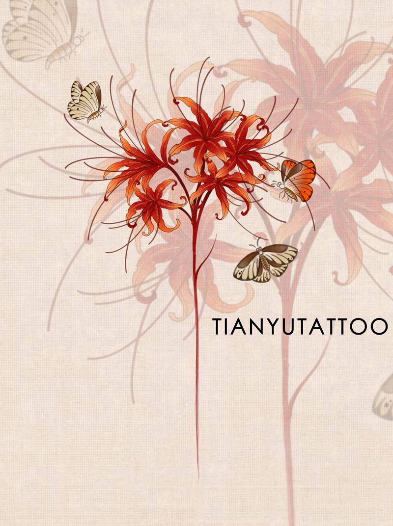 西安纹身|西安tattoo纹身图片_肩部背部彼岸花蝴蝶纹身图案