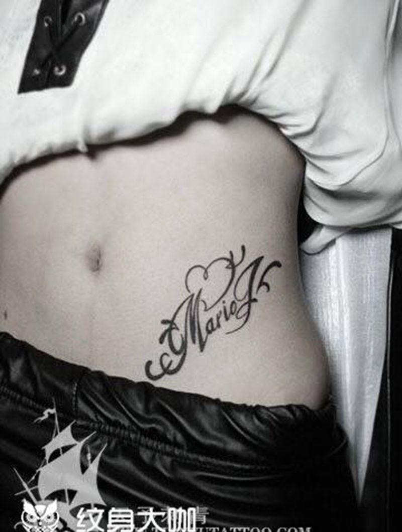 • T关于私处得爱!纹身图片_成品腹部清新字符图腾纹身图案