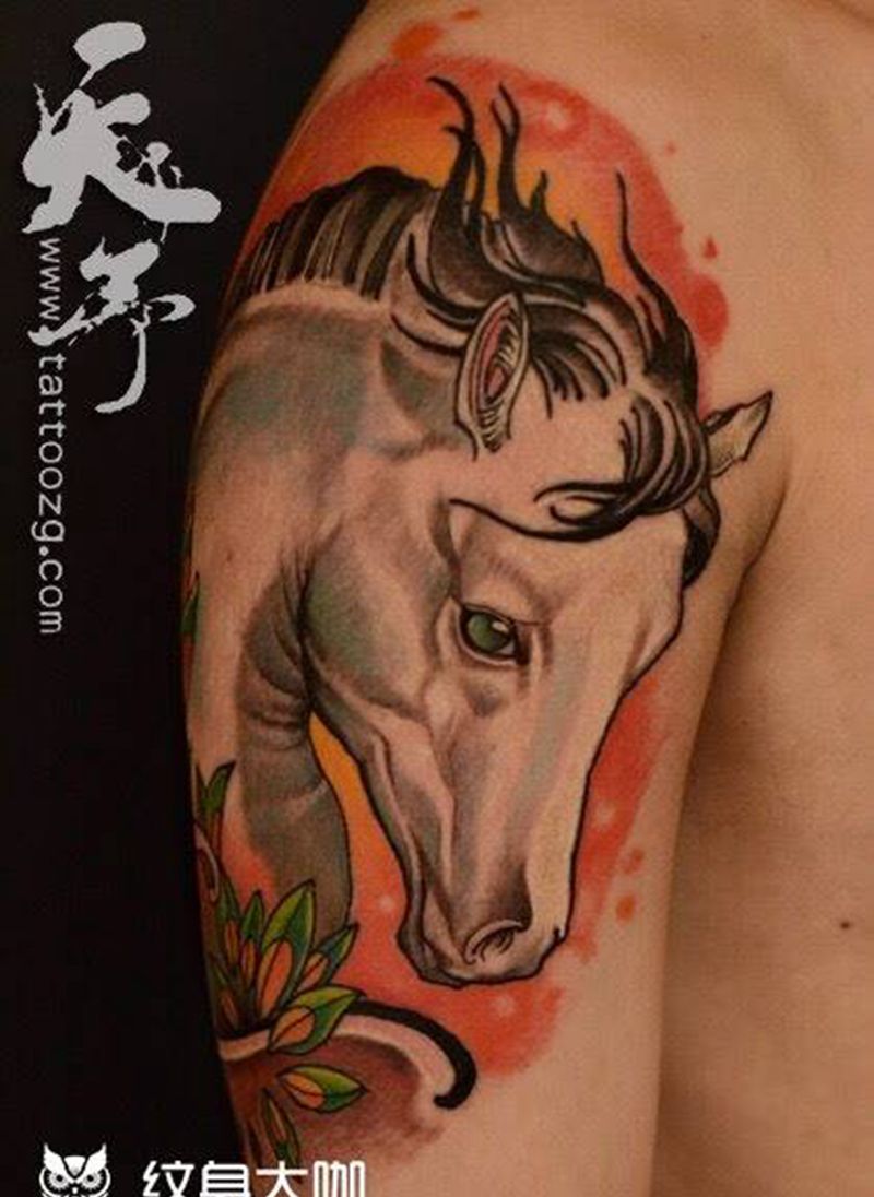西安天予刺青彩色作品合集纹身图片_西安彩色鬼神动物原创传统成品纹身图案