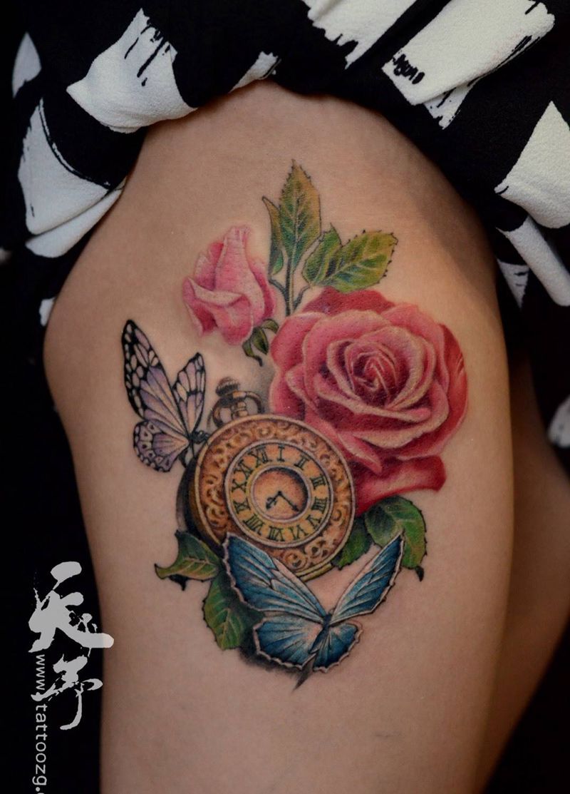 西安天予刺青彩色作品合集纹身图片_西安彩色静物原创清新成品纹身图案